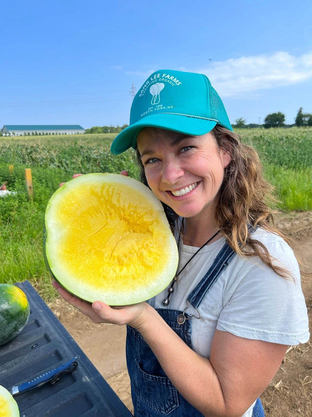 Lucy Senesac is a farmer and business owner, educator and health coach who manages many aspects of Sang Lee Farms with her partner Will and his family. After studying psychology and art in college, she traveled the world by working on organic farms before landing back in her hometown and at Sang Lee in 2011. Since then, she has made it her mission to share her passion and knowledge for growing food with the next generation by spearheading a farm camp for kids, leading school tours, and working as a school garden consultant to North Fork schools. At the farm, Lucy loves to wear many hats that include managing the staff, CSA program, retail/farmers markets as well as marketing and outreach/education. Her passion for farming organic food and feeding the community is felt by those she teaches and manages, and she hopes one day to start a non-profit to further this mission.