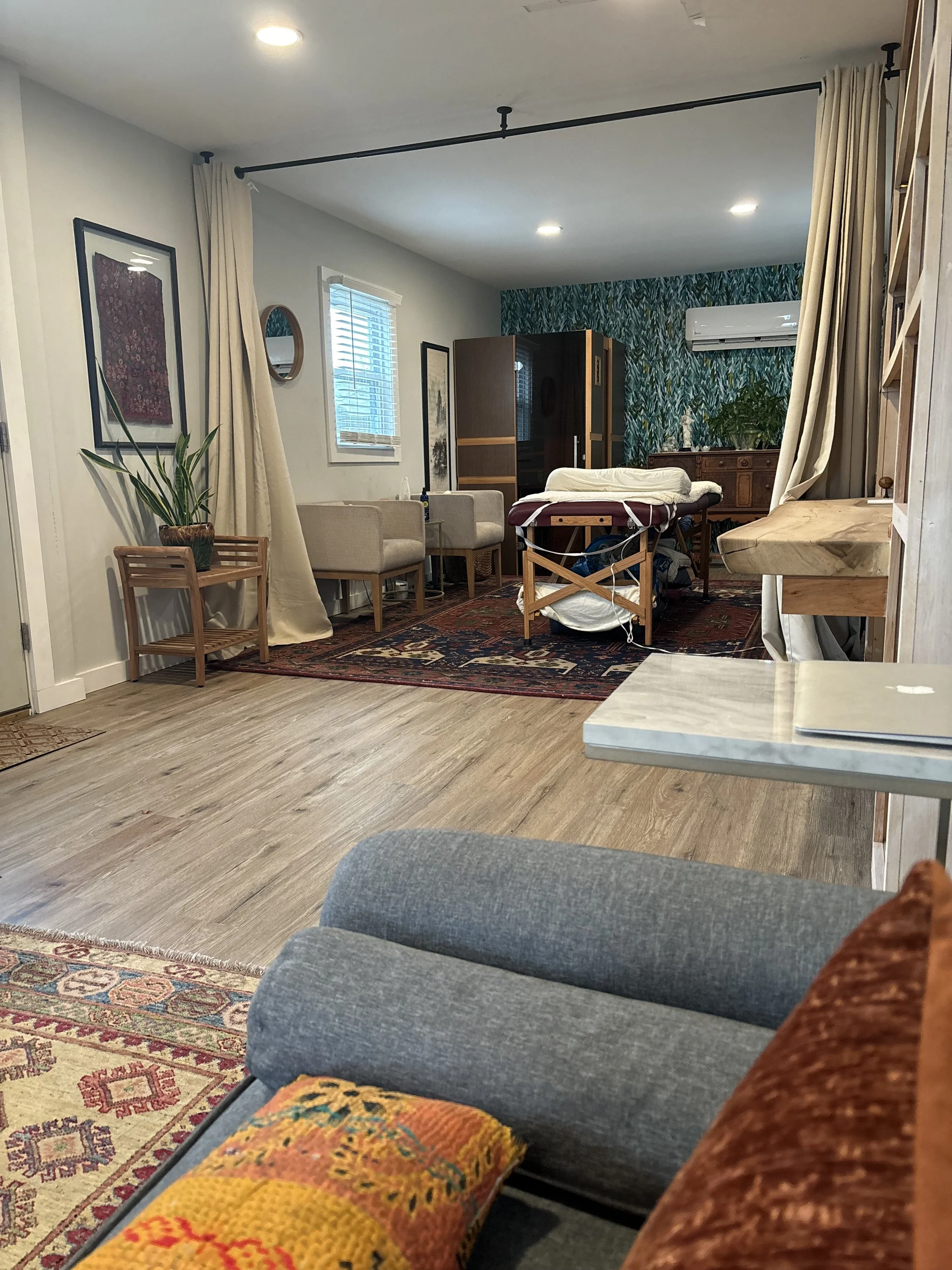 The Studio is a welcoming space where health and comfort come together. The apothecary shelves are filled with botanicals, supplements, and natural remedies chosen with care, while our library of books on medicine and plants offers a place to pause, learn, and be inspired. A private treatment and consultation room provides a calm setting for meaningful conversations and personalized support. Here, every detail is designed to help restore balance, nurture vitality, and remind you that your energy truly matters.
